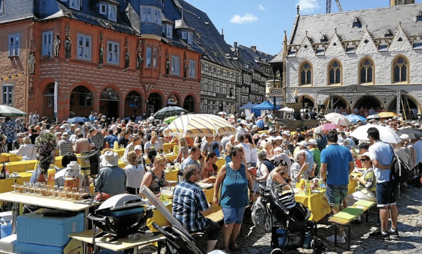 Das Bürgermahl „Lange Bank auf dem Marktplatz“ ist ein Kooperationsprojekt der Bürgerstiftung für Goslar und Umgebung mit der FreiwilligenAgentur Goslar. Auf dem Marktplatz werden zahlreiche Tische und Bänke aufgestellt. Auf der für diesen Tag bereitgestellten Bühne findet ein ansprechendes Unterhaltungsprogramm statt.